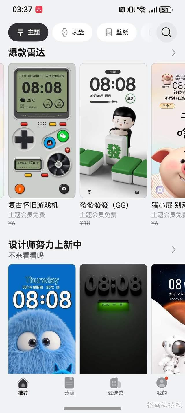 提醒一下,这套是会员限定的,已经开通了华为主题会员的用户一定不要错过。而且,开通会员后,华为主题里的各种潮趣主题就都能用了,比如最近上架的《复古怀旧游戏机》和《发发发发 (GG)》这两套主题就很值得推荐,一个情怀拉满,一个寓意不错,也都是会员免费,而且很多主题升级鸿蒙6之后还有更多的互动玩法,大家快去探索一下吧!