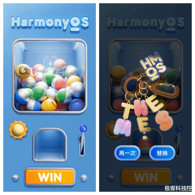 最有意思的还是锁屏,它不是一张静态壁纸,而是做成了一个“锁屏玩法”。锁屏界面右滑,可以发现一个小小的扭蛋机,点击右下角的开关,它真的会启动,然后会随机掉出一个钥匙扣挂件。